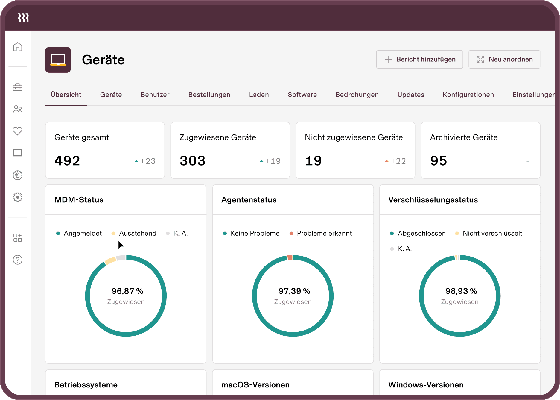 - Benutzerfreundlichkeit: Achten Sie darauf, inwieweit die Lösung sowohl durch Administratoren als auch durch Anwender intuitiv genutzt werden kann. Eine Lösung mit einer übersichtlichen Benutzeroberfläche und einer zentralisierten Verwaltungskonsole erleichtert es Ihrem IT-Team, Geräte bereitzustellen, zu überwachen und zu verwalten.
