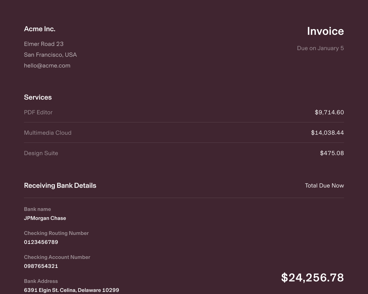 - Multiple payment options: support for ACH, wire transfers, virtual cards and paper cheques