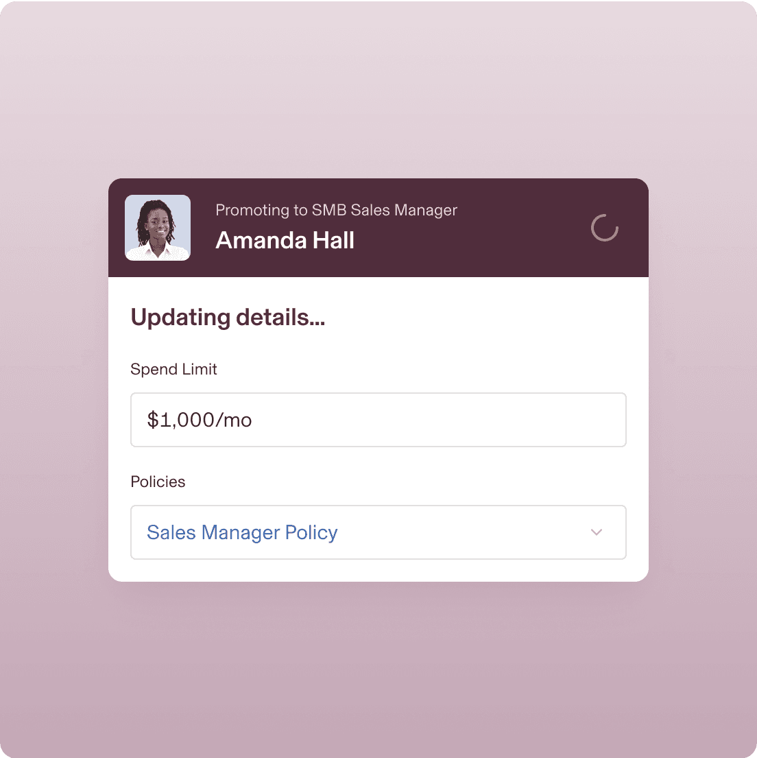 Rippling automates the entire cardholder lifecycle, from updating card policies when employees are promoted to reassigning cards after they offboard, so your business never misses a beat.