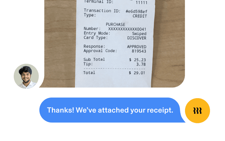 After making a charge, employees can text a picture of their receipt for your records, making it easier to close the books for everyone.
