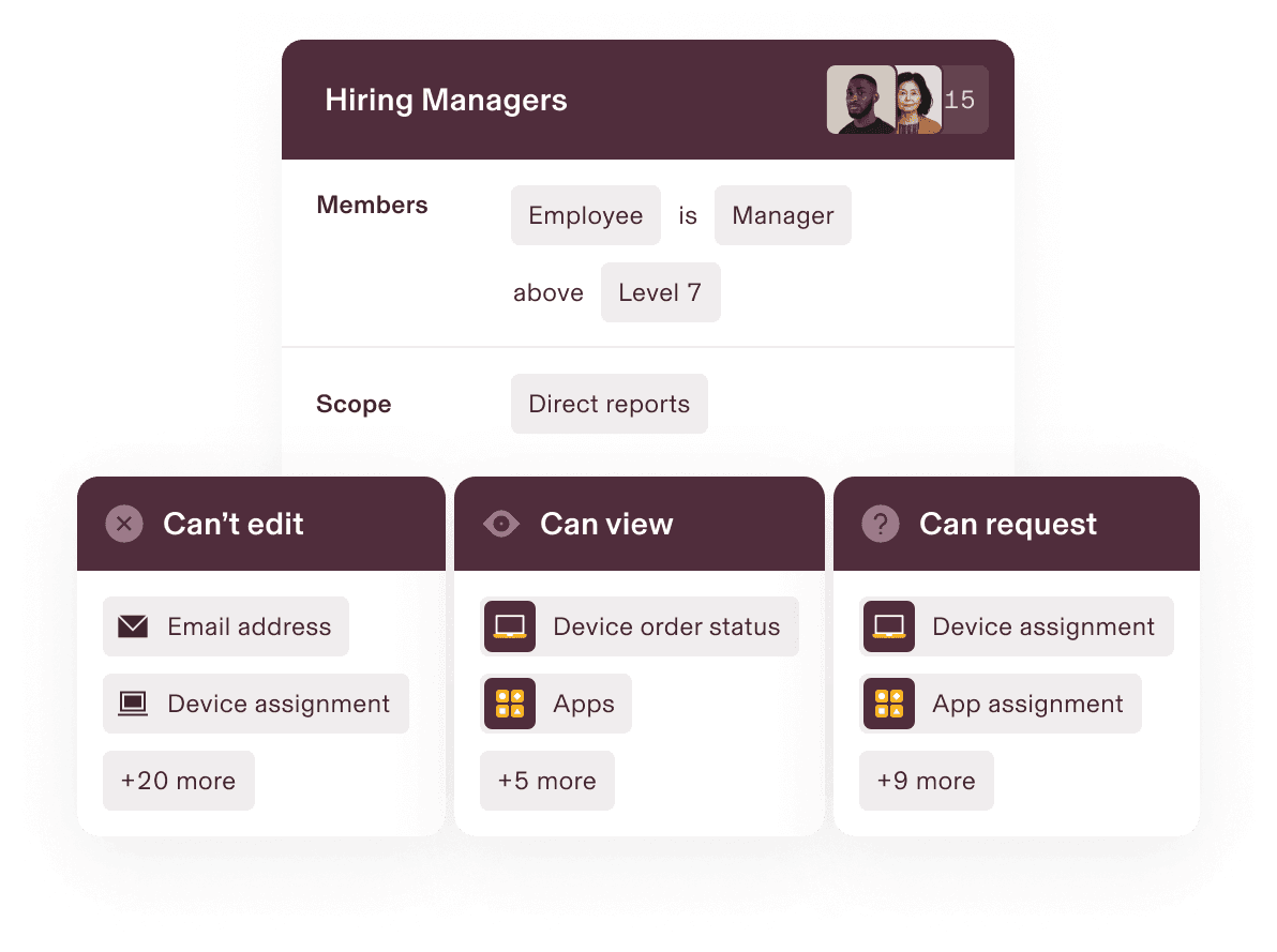 Automatically assign permission profiles with Supergroups—dynamic membership lists built using attributes like level or location. As an employee’s attributes change, their permissions update.