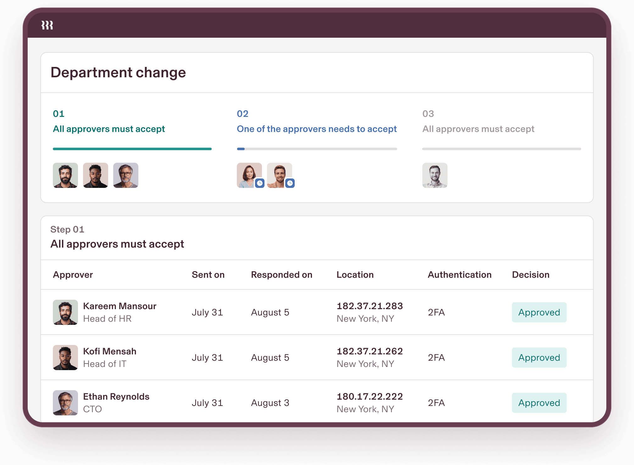 Build approval chains that respond to the dynamics of your business. Rippling supports multi-approver logic and can handle complex situations, like re-routing a request if its primary approver is on holiday.
