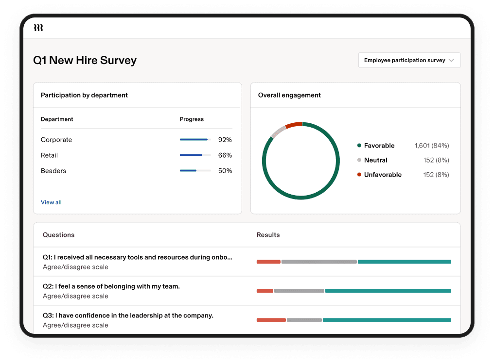 Little Words Project uses Rippling to run surveys and performance reviews. New hire surveys go out 45 days after a retail employee's first day, surfacing feedback and flagging potential issues early.