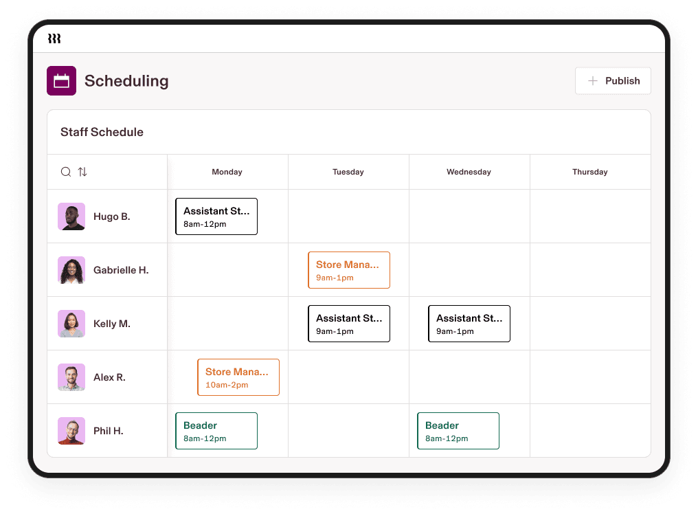 Store managers build schedules through Rippling, employees clock in via kiosks, and approved hours sync directly to payroll after managers approve them in one click. Plus, employees can swap shifts or pick up open shifts without manager intervention. “Rippling is one of the most user-friendly scheduling tools I’ve used over the years,” notes Martin.