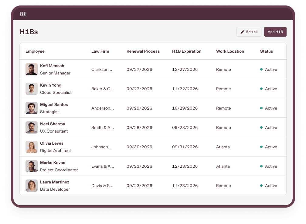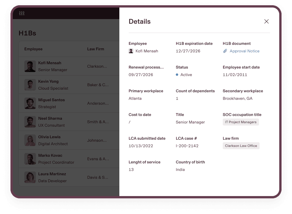 The clunky system meant RCC Global was at risk of falling out of compliance with immigration authorities—or missing a renewal date and spending around $2,800 on expediting a visa application.