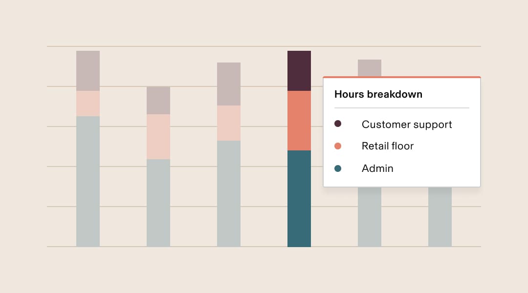 If your employees perform different tasks throughout the day—for example, working as a cashier, restocking inventory, and assisting customers—you can track your payroll costs split out by these different areas of work (and publish these costs properly to your general ledger system).