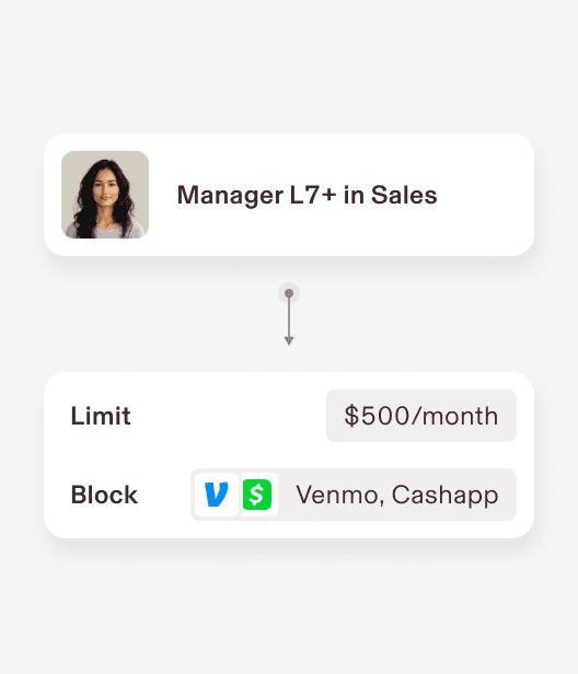 Spending limits and permissions that update automatically with your org chart. From instant card issuing to automatic deactivation.