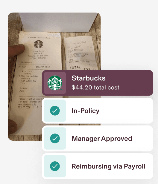 Snap a photo or forward an email—Rippling handles the rest. Automatic receipt matching, routing, and reimbursement across 100+ countries.